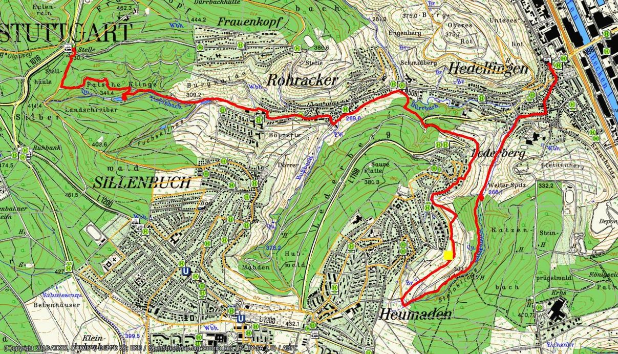 Wanderstrecke: | Stuttgart-Stelle −Tiefenbachsee − Rohracker − Mostbesen Heumaden − Hedelfingen |